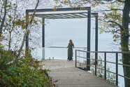 В исторической части Светлогорска есть смотровая площадка у лифта. Там там можно сделать не только стандартное фото у моря, но и стильные снимки на фоне лифта и вечнозелёных кипарисов.