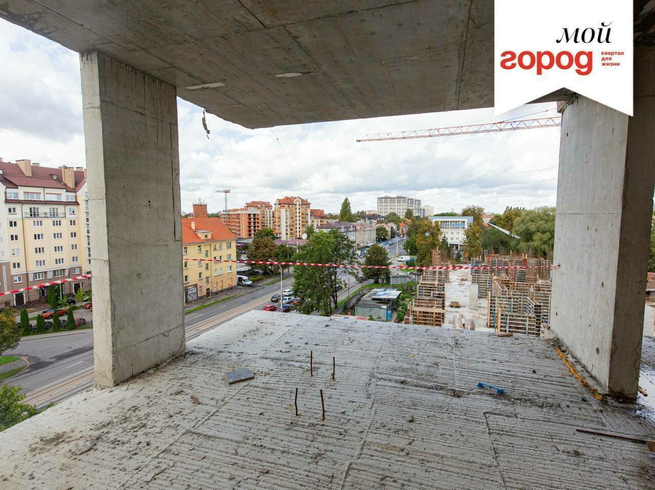 На фото видно, как квартал стремительно растёт: уже установлены оконные конструкции, ведутся внутренние работы. С верхних этажей открываются панорамные виды на центр Калининграда — именно такими их увидят будущие жильцы.