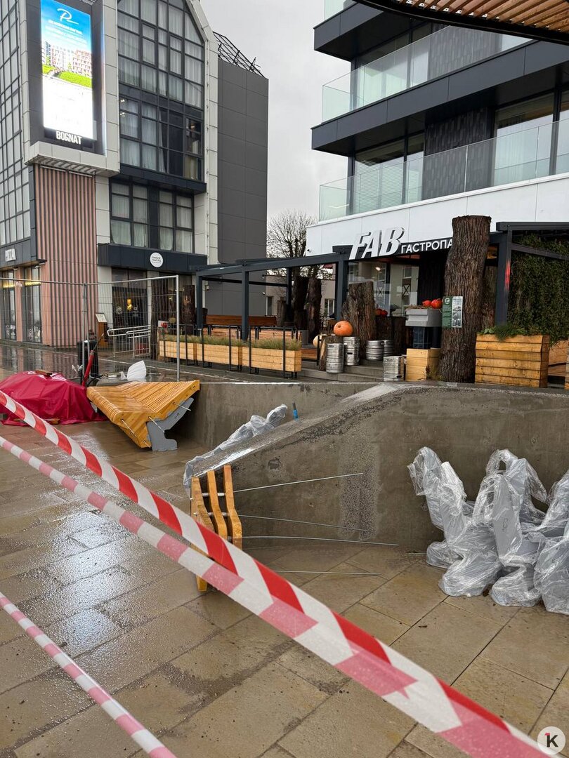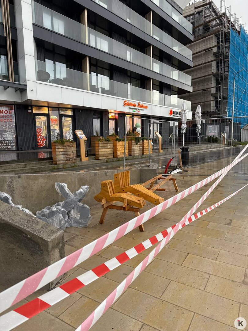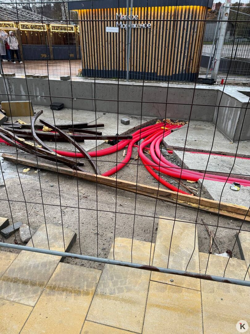 Однако работы на променаде, судя по всему, продлятся ещё некоторое время. По соседству до сих пор стоят строительные ограждения и висят красно-белые ленты. Местыми из-под дыр в брусчатке торчат провода и другие коммуникации.