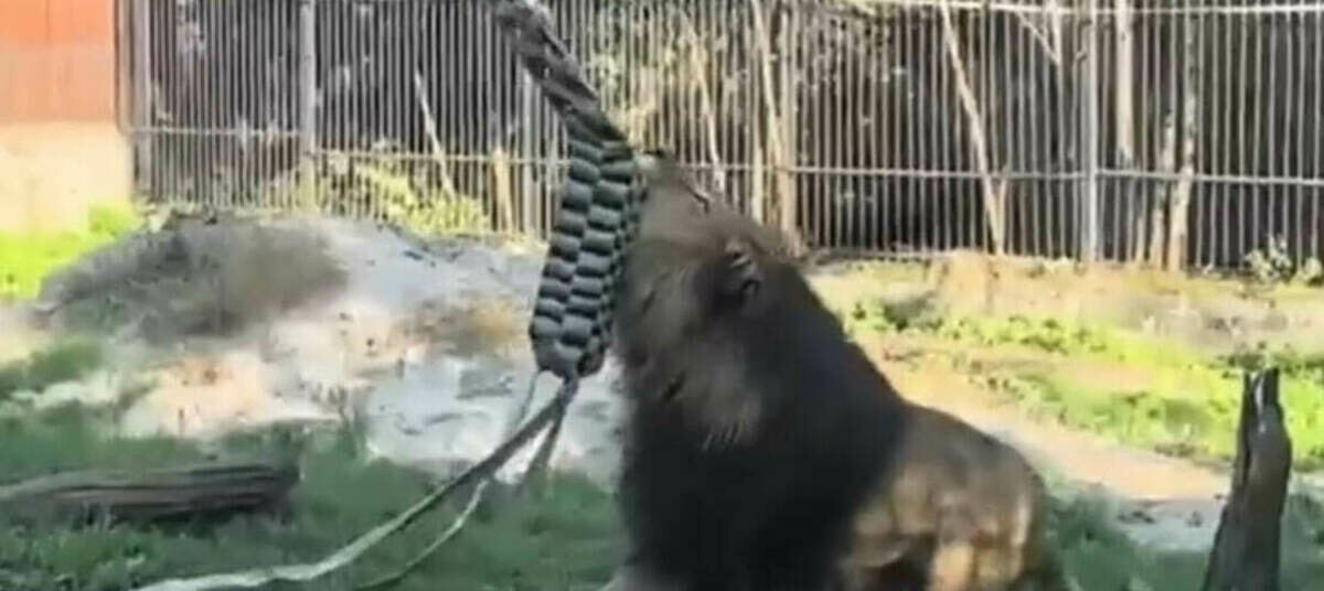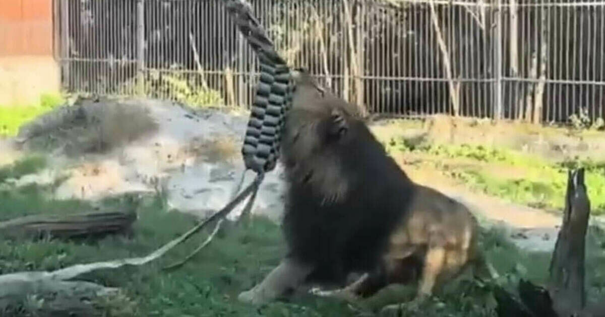 В Калининградском зоопарке «ленивый» лев Тигран воинственно сражался с косичкой, сплетённой из пожарных рукавов. Видео опубликовала пресс-служба учреждения в среду, 29 октября.