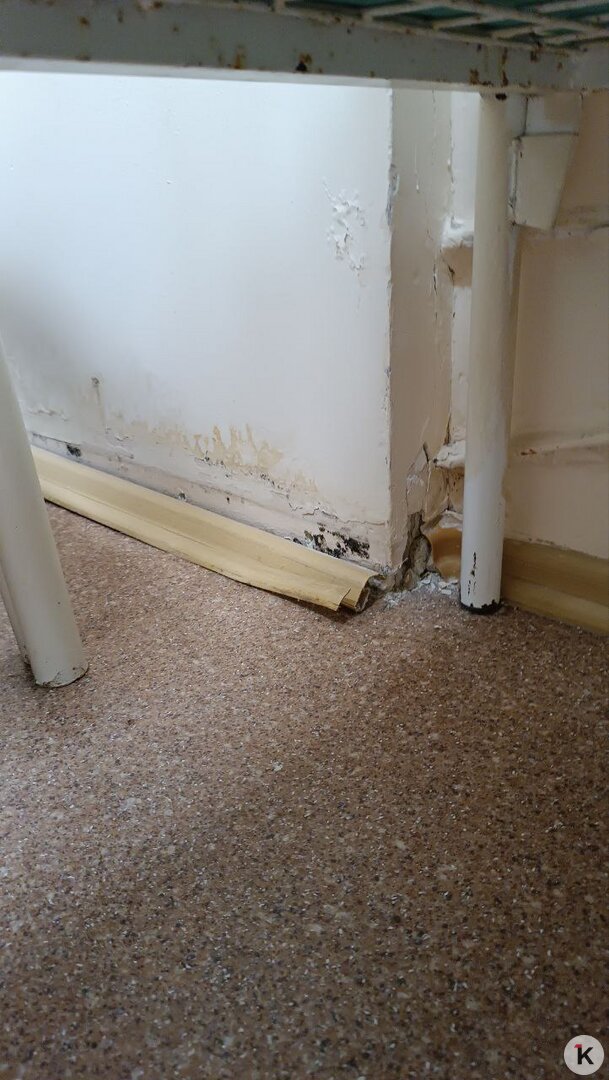 Женщина поблагодарила врачей и медсестёр за быстрое обследование, внимание и профессионализм, но пожаловалась на состояние помещений: «Стены грязные, краска и шпаклёвка местами отвалились. На откосах острые металлические углы, дверь в ванную закрывается с трудом, так как петли не затянуты. Дверь в дырках. Плинтусы поломанные, дырявый линолеум. Стены с трещинами, на потолке следы то ли воды, то ли грибка. В туалете дверная коробка рассохлась и вздулась, плитка битая. Кровати скрипят так, что разбудить ночью можно пациентов через стенку».