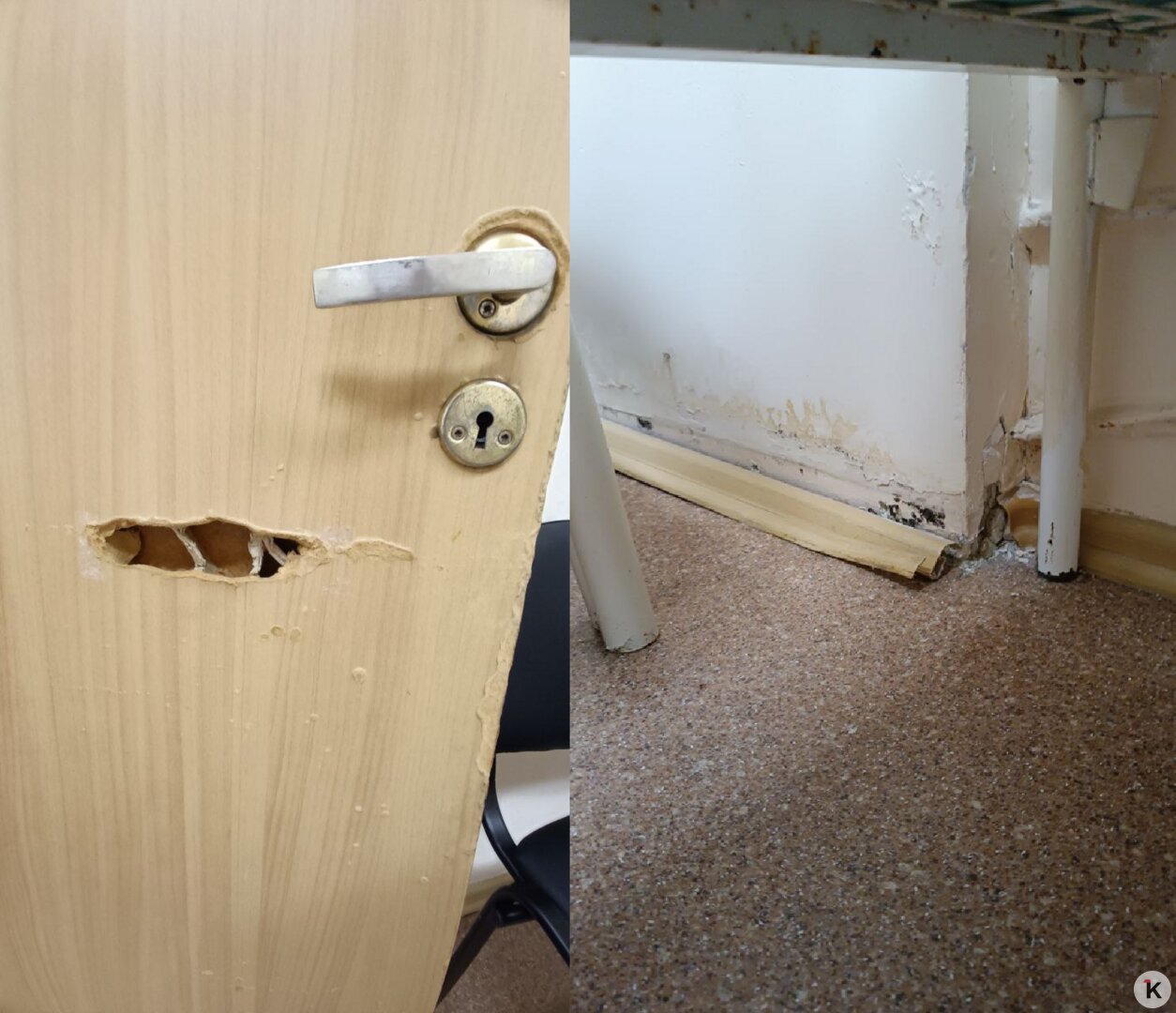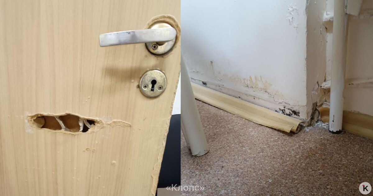 В палатах детского инфекционного отделения Центральной городской клинической больницы покрылись пятнами стены и полы, а в дверях появились дыры. Об этом «Клопс» рассказала мама ребёнка, проходившего лечение в медучреждении.
