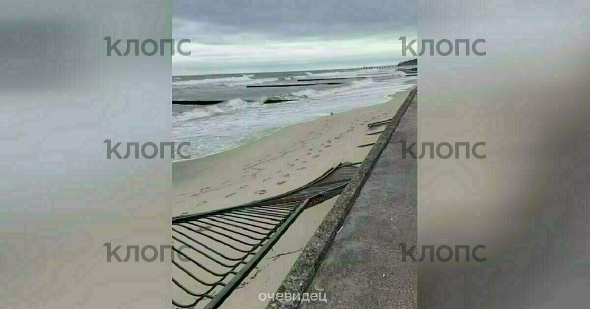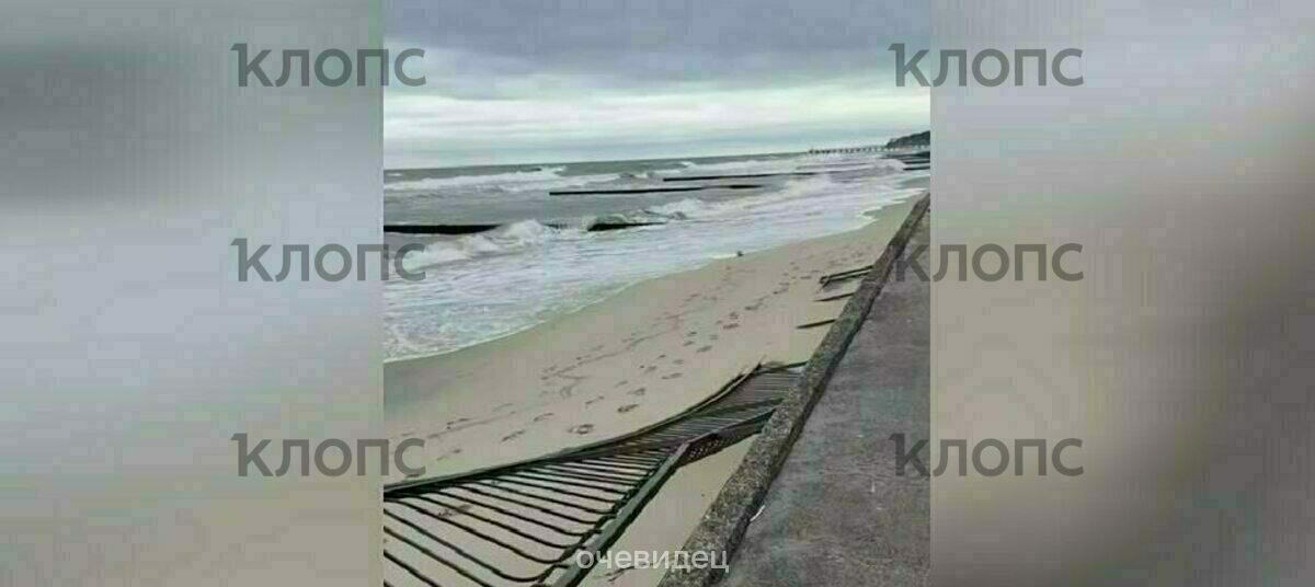 В Пионерском стихия снесла металлическое ограждение на пляже. Об этом «Клопс» рассказал очевидец.