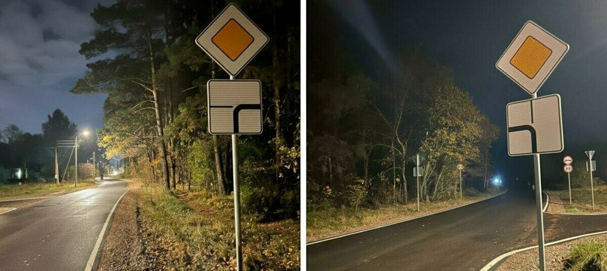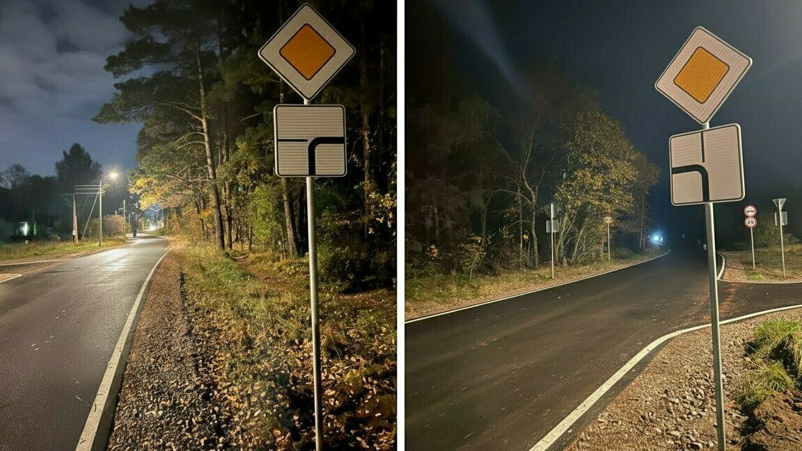 На новой дороге в районе Мамоновского шоссе, которая ведёт в СНТ «Мечта», установили знаки приоритета, перепутав направление движения. В итоге главная дорога в обоих направлениях теперь ведёт в сторону леса, в кювет.