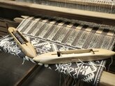По сути, это та же рама, только у неё уже есть бёрдо — кстати, самая сложная в изготовлении, а потому и дорогая деталь. Это специальная планка с отверстиями и щелями, через которые пропущены нити. Бёрдо позволяет быстро раздвигать их в нужном порядке, и, перекидывая челнок, переплетать основу с утком и создавать узор полотна.