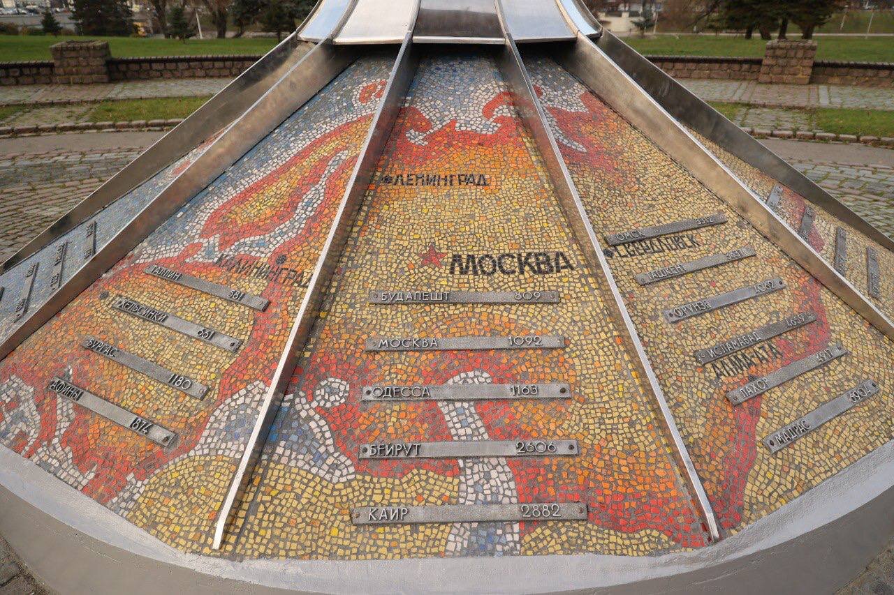 Специалисты постарались сохранить исторический облик памятника времён СССР и все функциональные элементы, восстановили бетонное основание, флюгер, металлическую конструкцию, отреставрировали мозаику и заменили детали в часах.