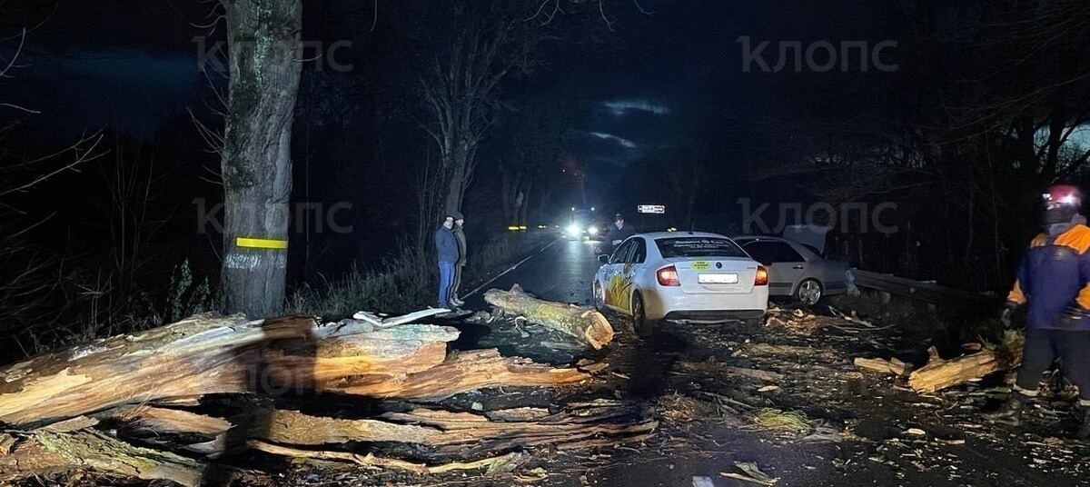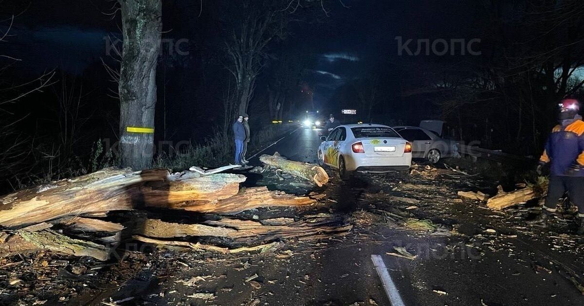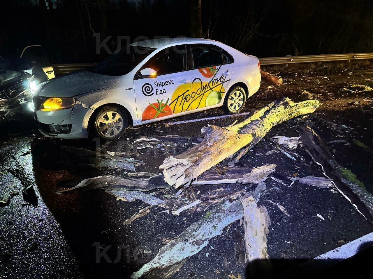 В Калининграде Mercedes врезался в дерево, которое упало на дорогу. Ехавший следом автомобиль влетел в легковушку. Об этом «Клопс» рассказали очевидцы.