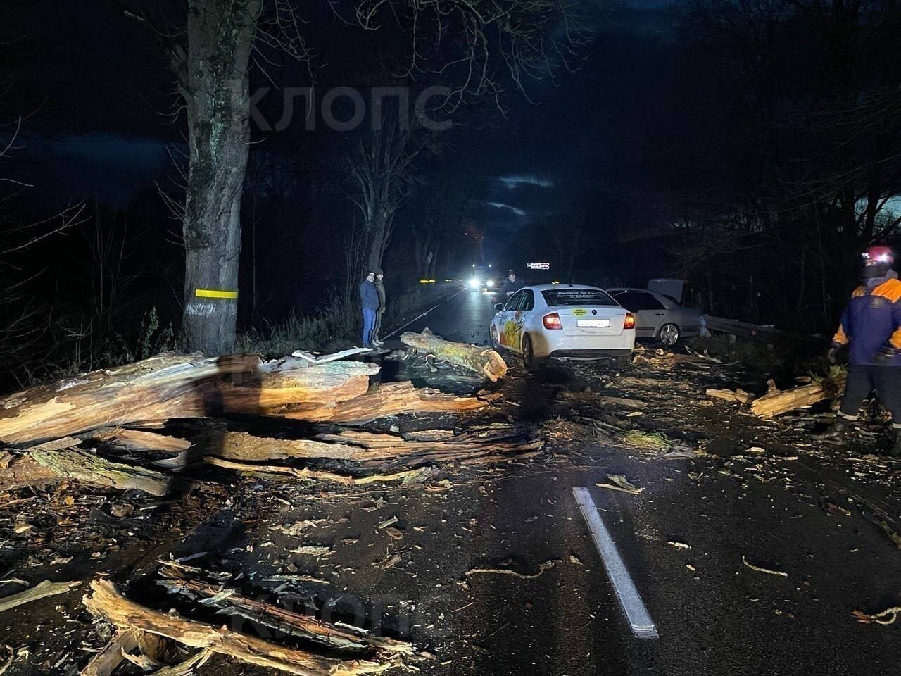 На место вызвали спасателей, которые оперативно распилили дерево, убрали его с дороги и помогли пострадавшим. От медицинской помощи участники аварии отказались.
