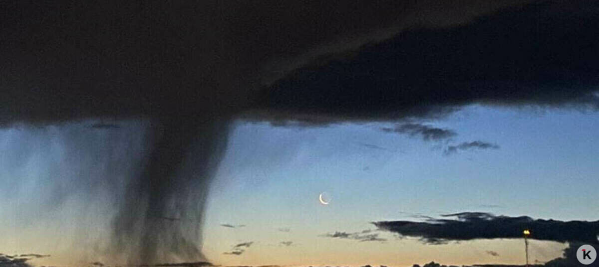 Плотная чёрная масса словно закручивалась вихрем и выглядела так, будто с минуты на минуту может перерасти в нечто опасное. Увиденное напомнило горожанам смерч.