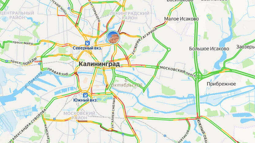 Калининград утром в среду, 19 ноября, встал в пробках. Об этом говорят данные сервиса «Яндекс. Карты».