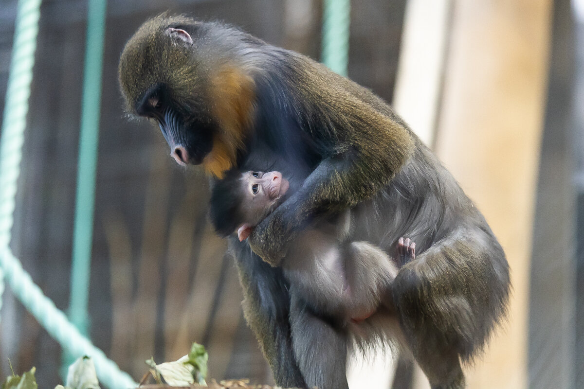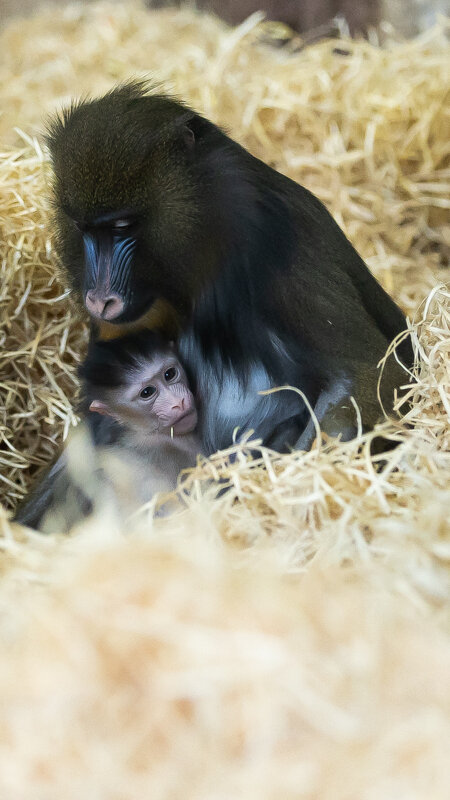 У семейства мандрилов из Калининградского зоопарка в начале ноября появился детёныш. За родительскими буднями понаблюдал фотокорреспондент «Клопс».