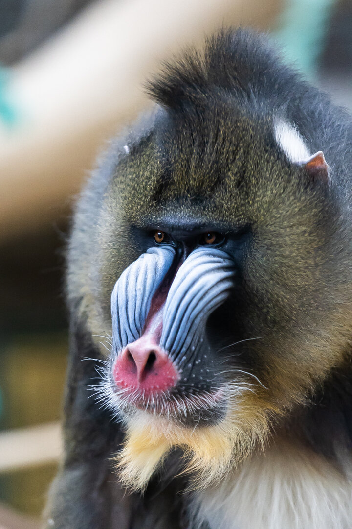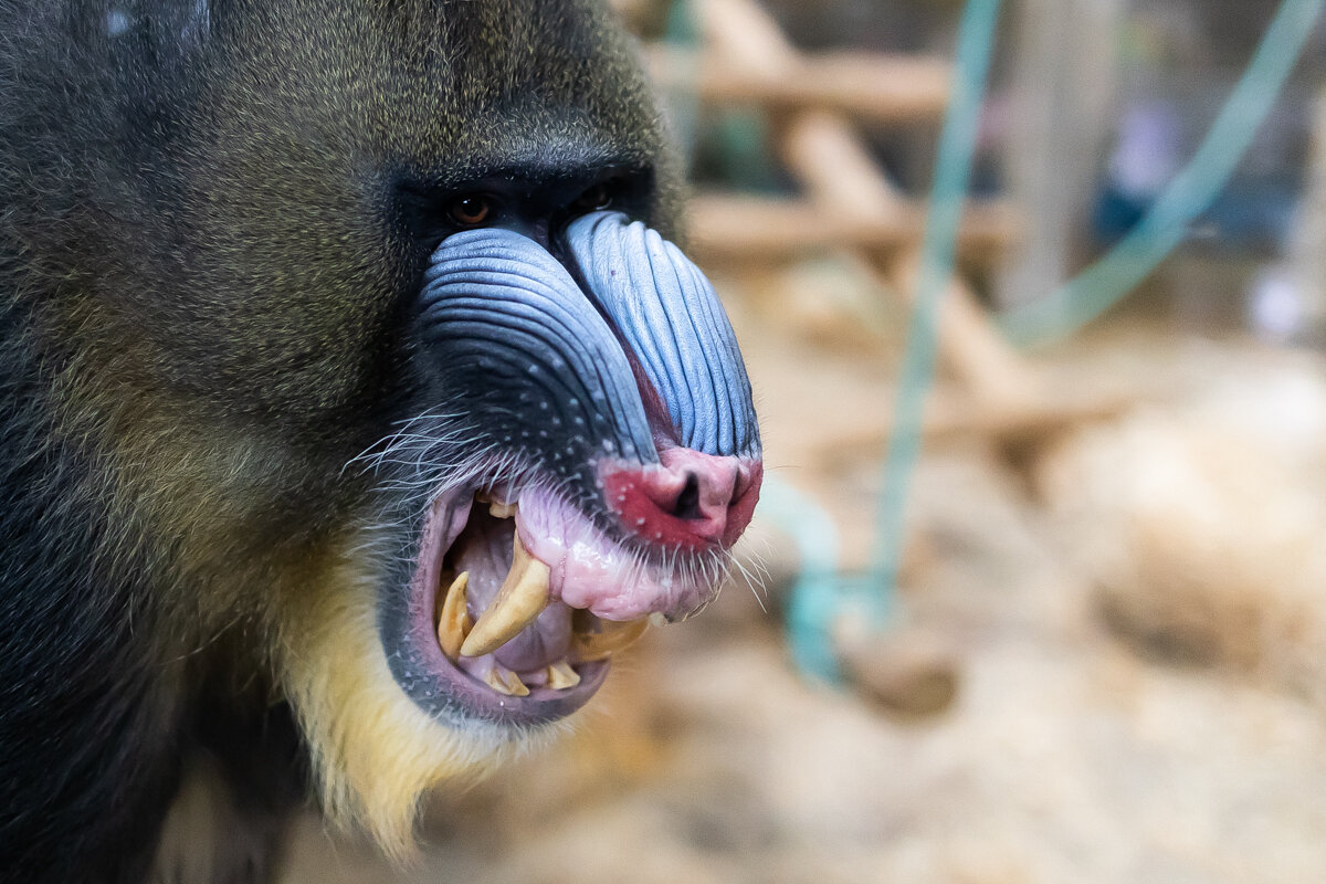 Мандрил — крупная обезьяна из семейства мартышковых. Рост самца может достигать 80 сантиметров, а вес — 50 килограммов. Животных отличает экстравагантная раскраска: борозды вдоль ярко-красного носа окрашены в голубой или синий цвет, борода состоит из жёлтых, оранжевых и белых волос, а шерсть на туловище может быть от бурой до тёмно-коричневой. Обитают мандрилы в Западной Африке и населяют влажные тропические леса.