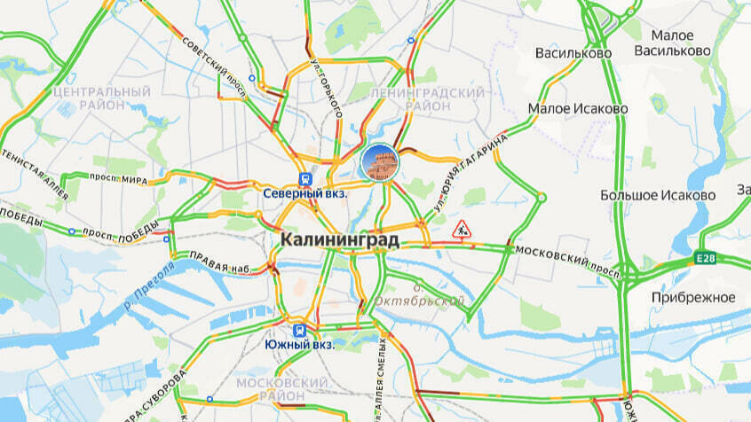 Калининград утром в пятницу, 21 ноября, встал в пробках. Об этом говорят данные сервиса «Яндекс. Карты».