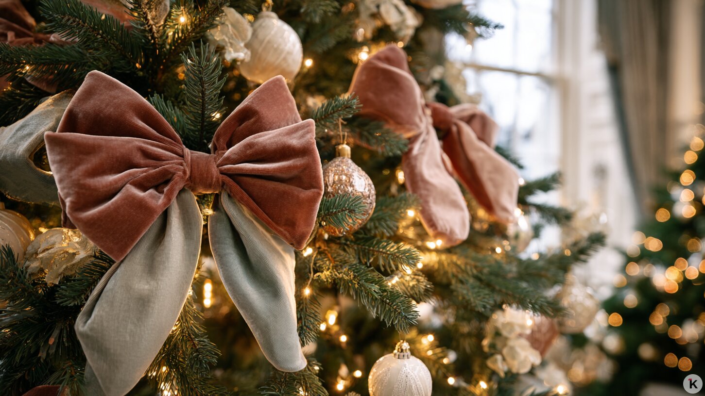 - Богатое и обильное — много слоёв декора, бархатные ленты, тёплое золото и медь, но всё аккуратно, без перебора.