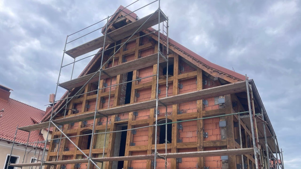 Другим камнем преткновения стало определение работ — реставрация или новодел? Исследования показали, что несущие балки давно пришли в негодность. «Проектом предусмотрен демонтаж разрушающегося каркаса, замена балок идентичного размера по обмерам, заполнение межбалочного пространства кирпичом, далее штукатурка. Не имитация — классический фахверк. <...> Можно, как дикая фантазия, было бы провести инъектирование гнилого, трухлявого дерева, однако таких надёжных растворов для возрождения несущих функций в реставрационной отрасли пока не предлагают», — говорится в посте службы ОКН.