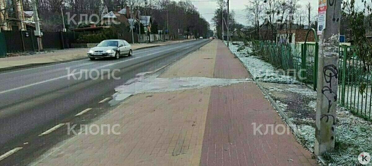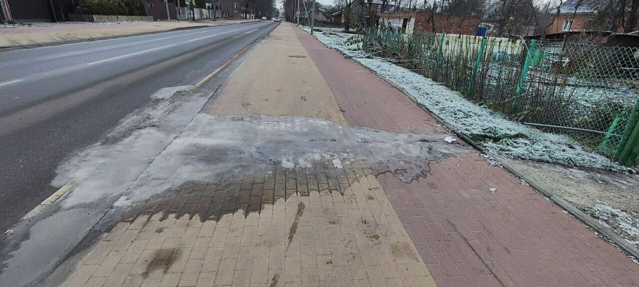 Тротуар здесь покрыт бугристой ледяной коркой. Как утверждают местые жители, ледяную ловушку создают умышленно.