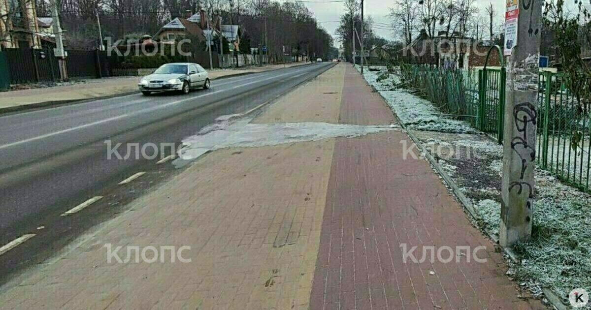 В Калининграде напротив одного из домов Центрального района ходить стало небезопасно: можно упасть и покалечиться. Об этом «Клопс» сообщили очевидцы.