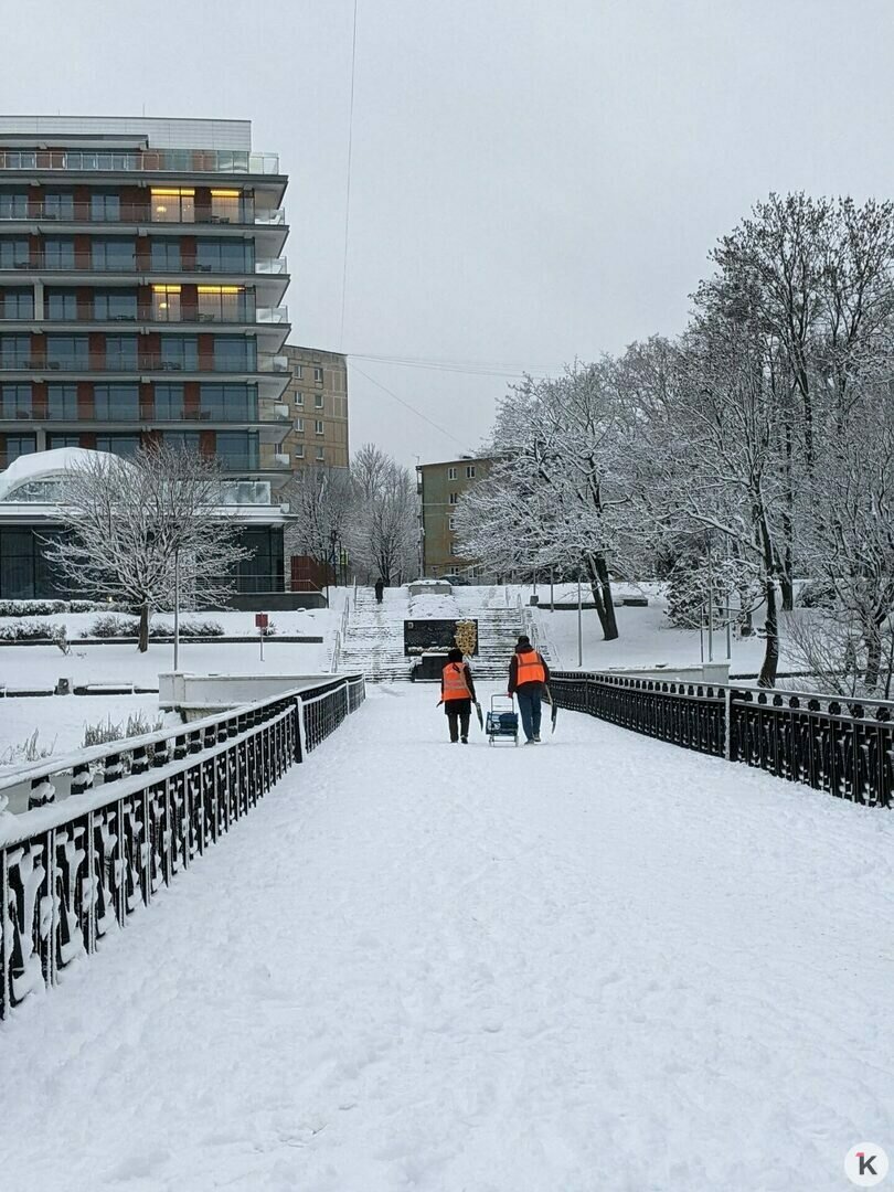 Противостояние коммунальных служб и небесной канцелярии в Калининграде продолжается. Несмотря на то, что дворники, как сообщили муниципальные власти, вышли на улицы уже в 4 утра, к началу рабочего дня тротуары местами всё ещё утопали в растоптанном снегу. Детали — в фоторепортаже «Клопс».