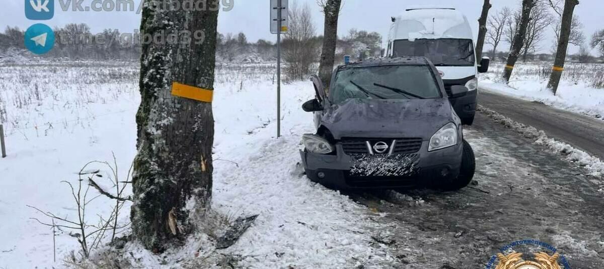 ДТП произошло в четверг, 27 ноября, около 11:42, на трассе Жилино — Неман. Водитель автомобиля не справился с управлением, что и стало причиной аварии. Пассажирка 1949 года рождения получила травмы, её увезли в больницу.