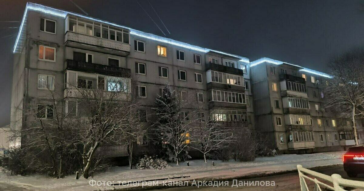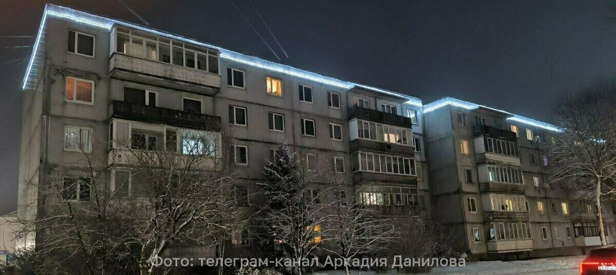 В Советске пятиэтажку подсветили к Новому году. Об этом сообщает глава администрации муниципалитета Аркадий Данилов в своём телеграм-канале.
