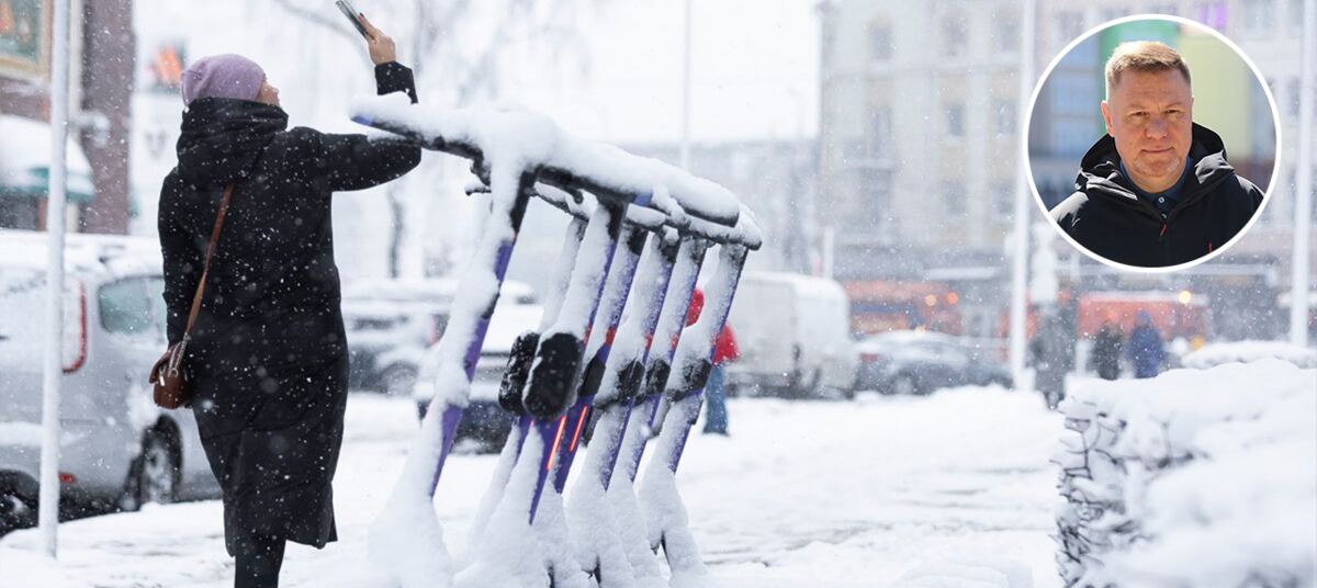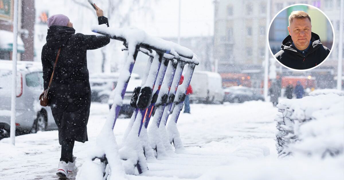 Жёлтые и фиолетовые агрегаты, от которых в тёплое время года еле успевали уворачиваться и пешеходы, и автомобилисты, остались одиноко стоять под снегом. Шеринговые компании пока не убирают их с улиц, надеясь на потепление. И это тот самый случай, когда плохой погоде только радуешься.