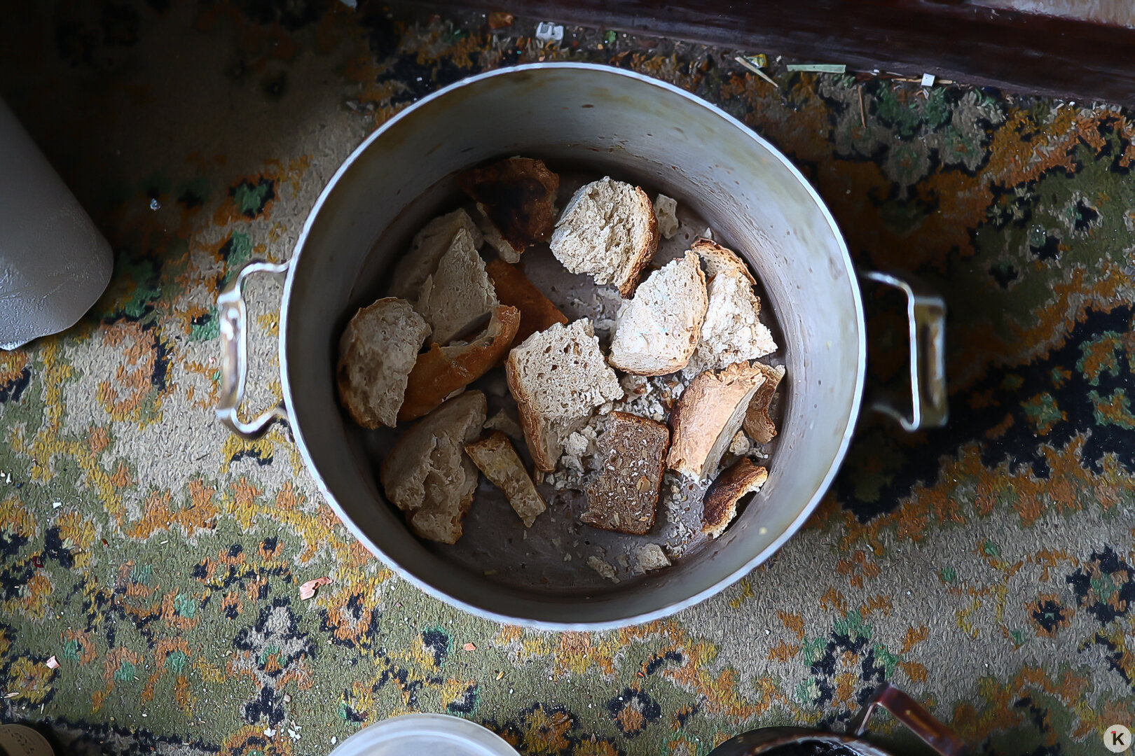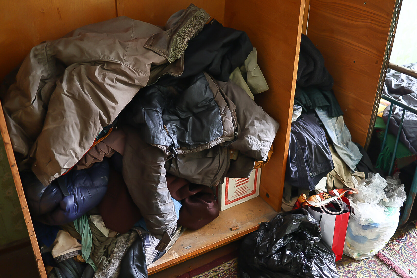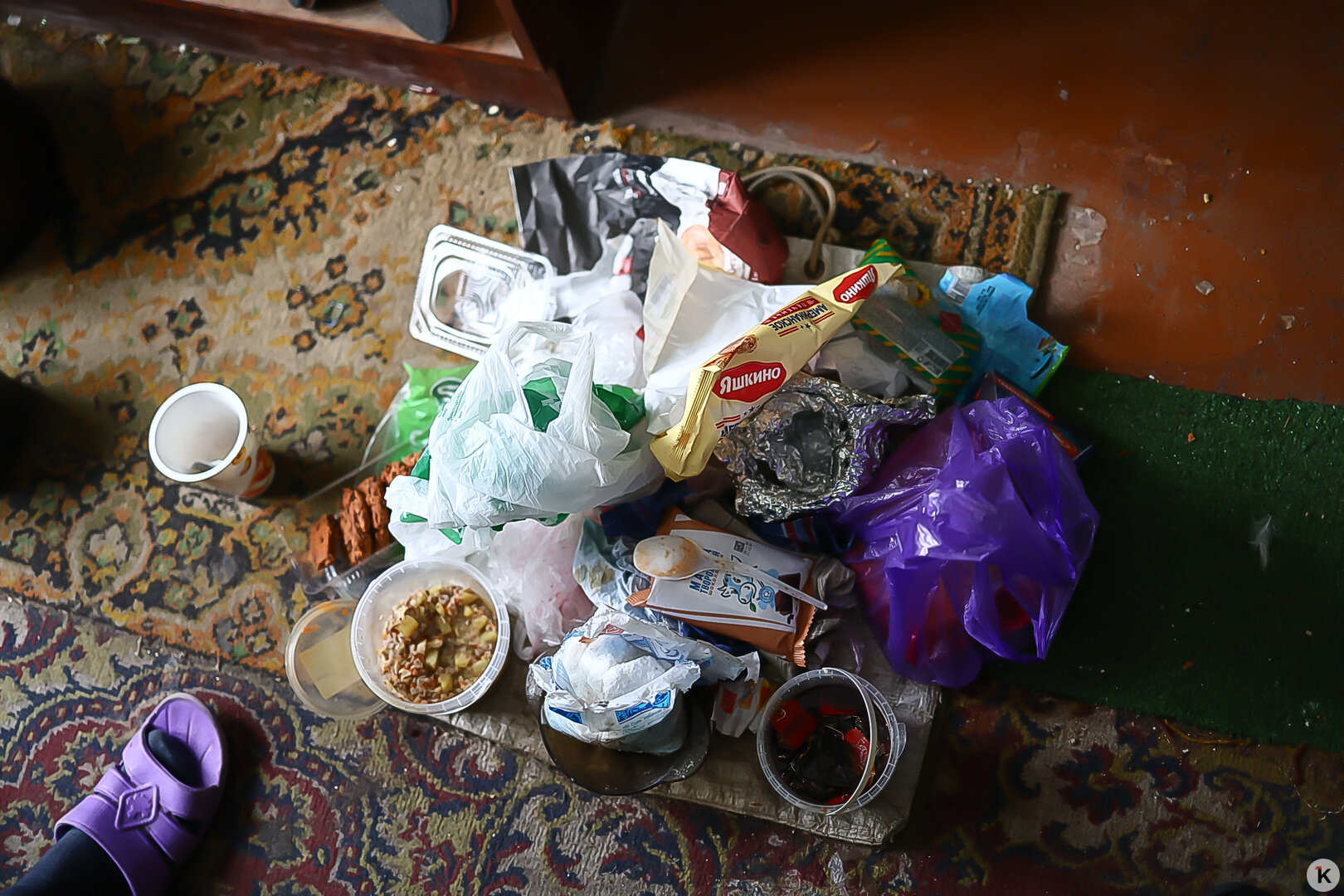 Воровать действительно нечего. Вряд ли самый алчный грабитель позарится на то, что здесь можно найти: груды непонятного тряпья, грязные кастрюли да выложенные ровными рядами на полу коробки от печенья и молочные пакеты.