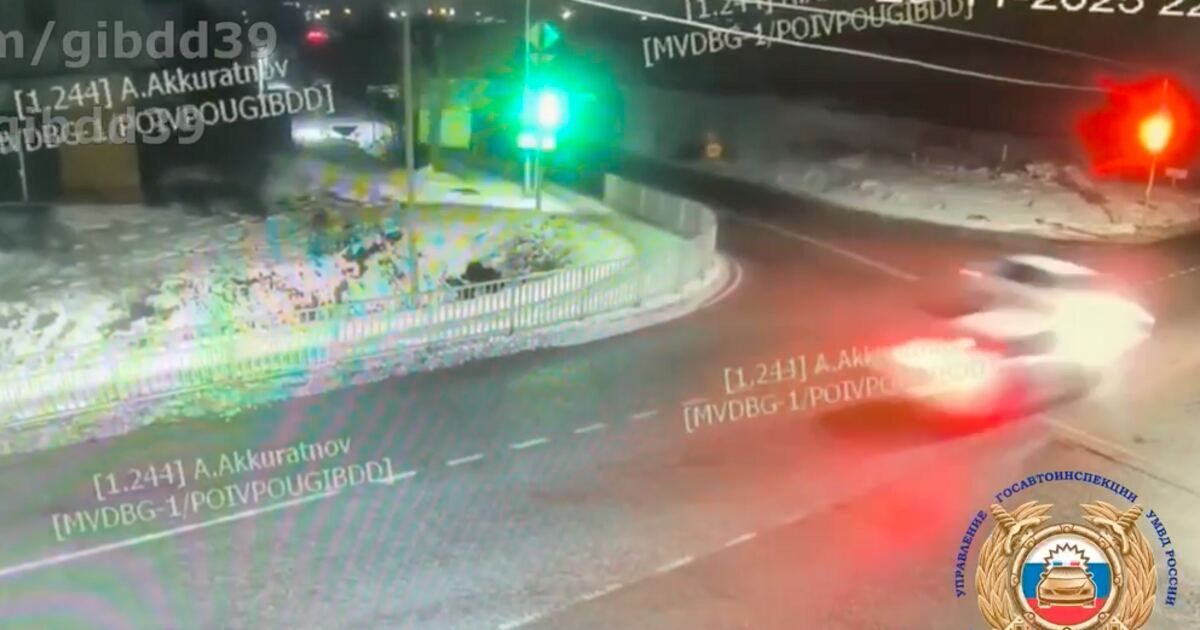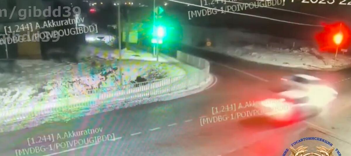 В Калининграде на Южном обходе пьяный водитель поехал на красный и врезался в другую машину. Видео ГКУ КО «Безопасный город»