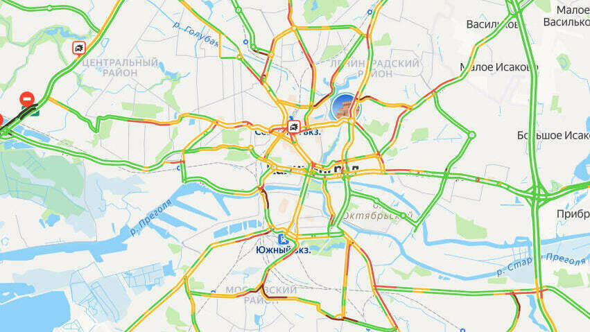 Движение затруднено на основных магистралях города, в том числе на Горького, Портовой, Железнодорожной, Гагарина, Невского, Черняховского, Фрунзе, 9 Апреля, Ленинском, Московском и Советском проспектах. Сообщается о двух ДТП — на Большой окружной и Советском проспекте. Общая дорожная ситуация в Калининграде оценивается в семь баллов.