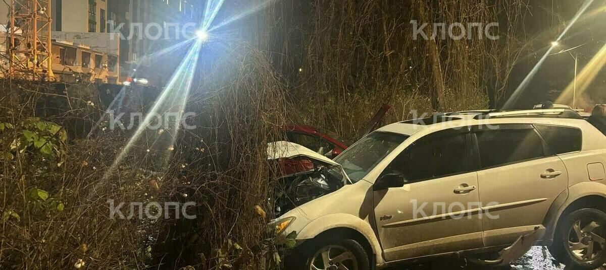 Инцидент произошёл вечером в среду, 3 декабря. По предварительным данным, 20-летний парень за рулём белого Pontiac на повороте врезался в красный Hyundai, за рулём которого был 47-летний шофёр. У водителя Pontiac травмы головы и ноги. Его забрала скорая помощь.