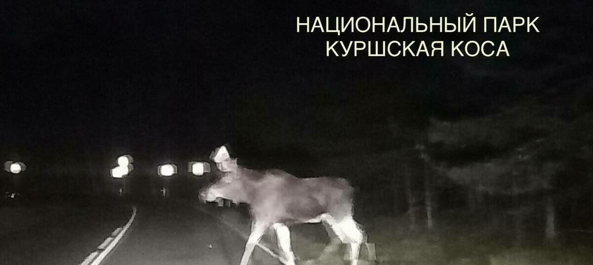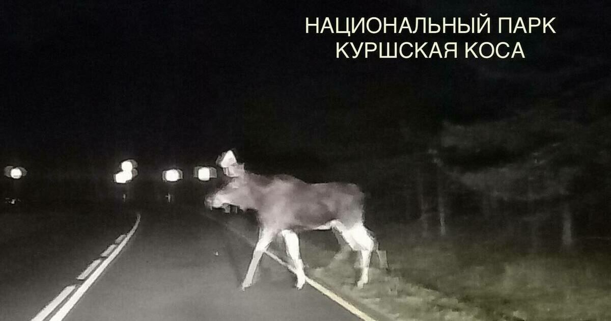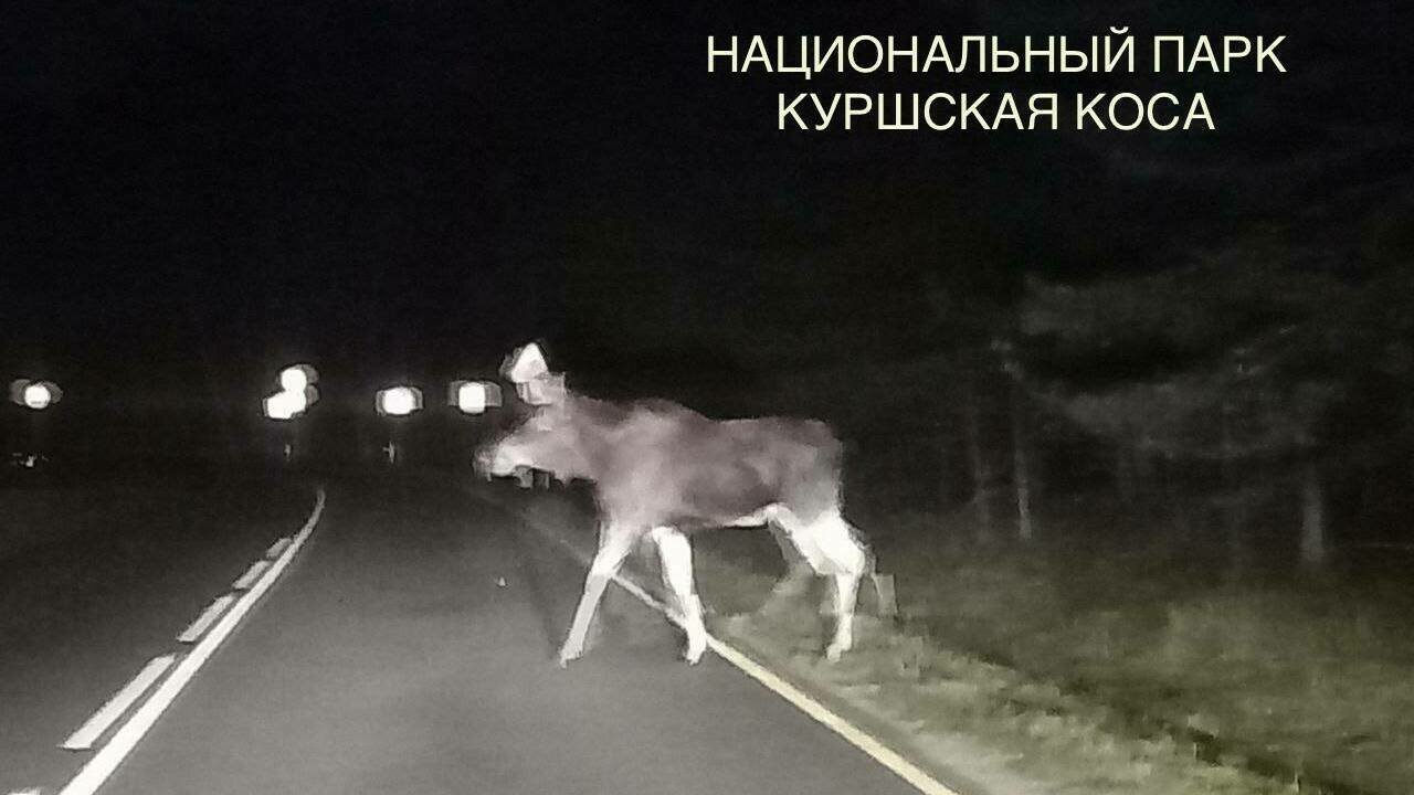 На Куршской косе ночью у дороги заметили двух лосей с детёнышем. Об этом сообщает пресс-служба нацпарка в четверг, 4 декабря.