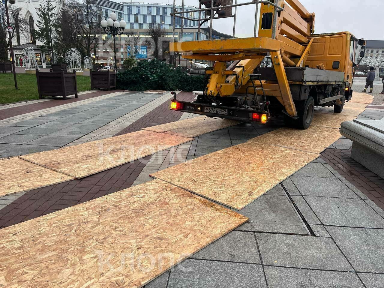 На площади Победы в Калининграде начали устанавливать главную новогоднюю ёлку. За началом монтажных работ наблюдал корреспондент «Клопс» в понедельник, 8 декабря.