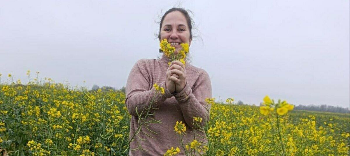 «И уже ближе к Краснознаменску смотрим: сначала просто обычные зелёные поля с молодым рапсом, — вспоминает девушка. — А потом всё желтее, желтее, и, наконец, прям яркое жёлтое поле. Мы, конечно, бросили машину, выскочили!»