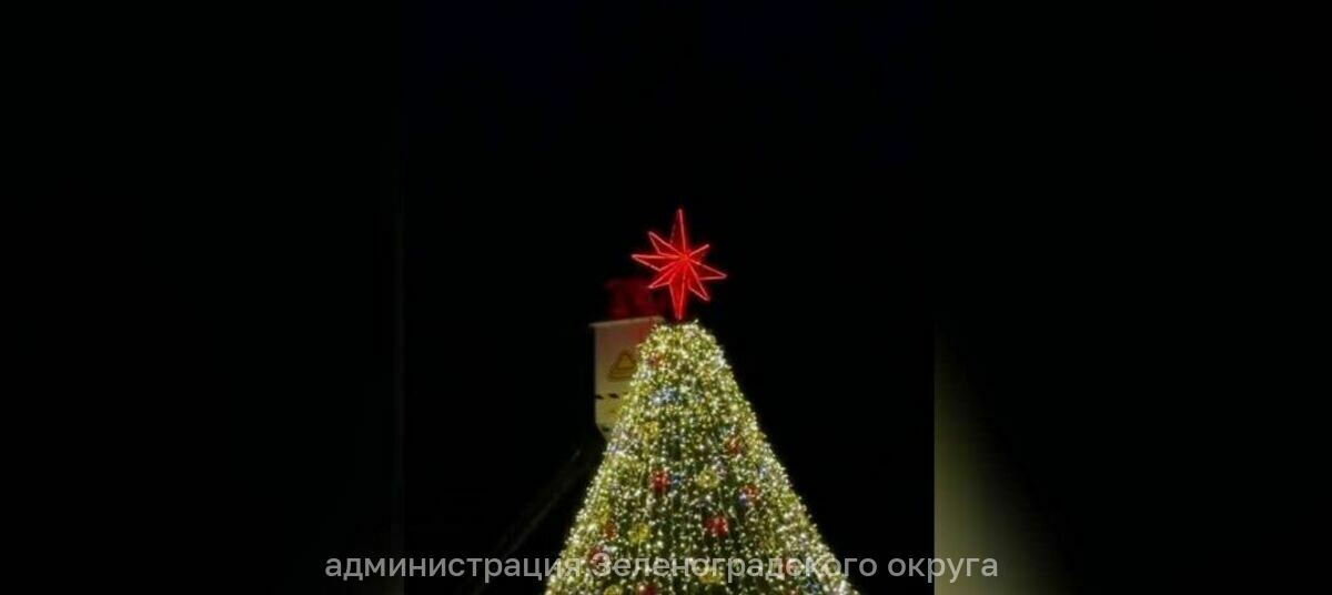 На верхушку ёлки в Зеленоградске установили новое украшение — восьмиконечную Вифлеемскую звезду. Об этом сообщили в администрации округа.