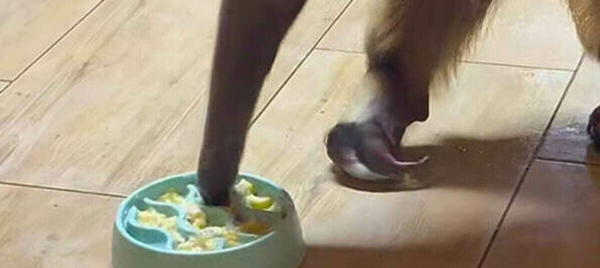 Такая миска для Мурашки — не прихоть, а необходимость. У неё с рождения наблюдаются проблемы с питанием из-за нароста на языке. Сейчас животному сложно высунуть его далеко, чтобы захватить достаточное количество пищи. Для профилактики киперы даже придумали специальный тренажёр, который улучшил ситуацию. Сложная миска может с этим помочь.