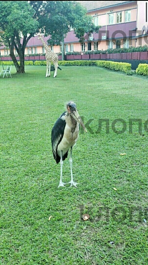 Местные жители носят с собой рогатки — бабуин её видит и отходит в сторону. Лагерь находился недалеко от реки. Гид предупредил, что сюда захаживают бегемоты и слоны. Не надо пытаться с ним сделать селфи, погладить и подружиться. Лучше тихо уйти в укромное место. А первое животное, которое я увидела, — кабан, такой, как Пумба из мультика. Мы кушали возле кафе, он пришёл и расположился рядом с нами в теньке. Там миска с водой стояла. Видимо, сотрудники кемпинга оставляют, потому что жарко.