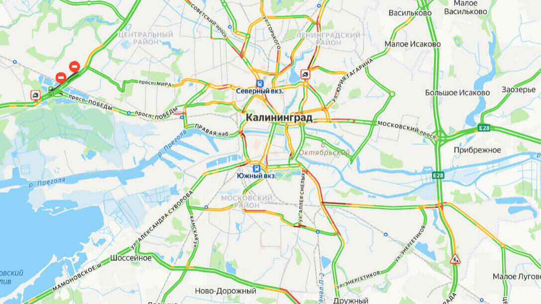 Калининград утром в пятницу, 12 декабря, встал в пробках. Об этом говорят данные сервиса «Яндекс. Карты».