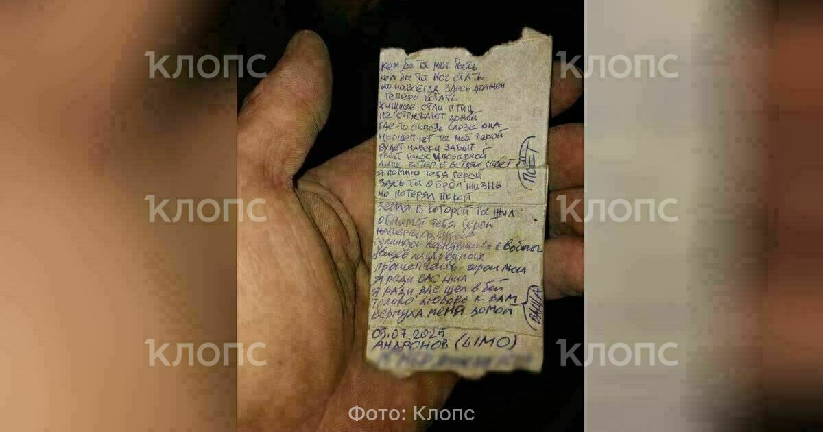 Можешь разместить у вас в местных группах?» Он прислал фотографию небольшого листка бумаги, где написаны эти тяжёлые строки. Стихи подписаны фамилией Андронов, стоит дата — 25 июля 2025 года», — рассказывает Сузанна.