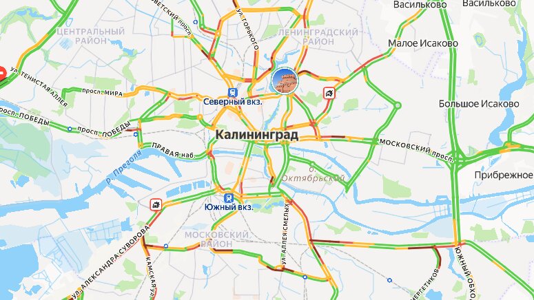 Калининградские водители застряли в 7-балльных пробках. Об этом говорят данные сервиса «Яндекс.Карты» в четверг, 18 декабря.