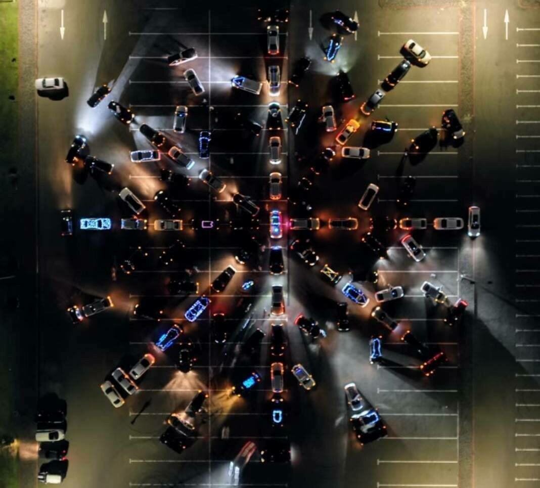 Калининградские автомобилисты выстроили на парковке возле стадиона «Ростех Арены» новогоднюю ёлку и побили свой же прошлогодний рекорд.