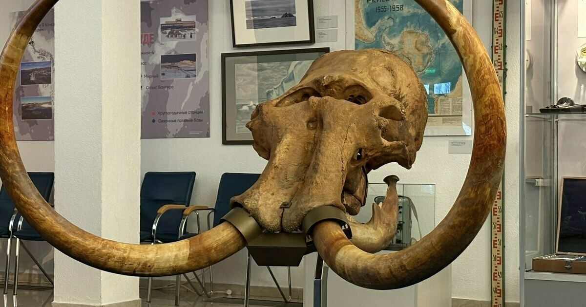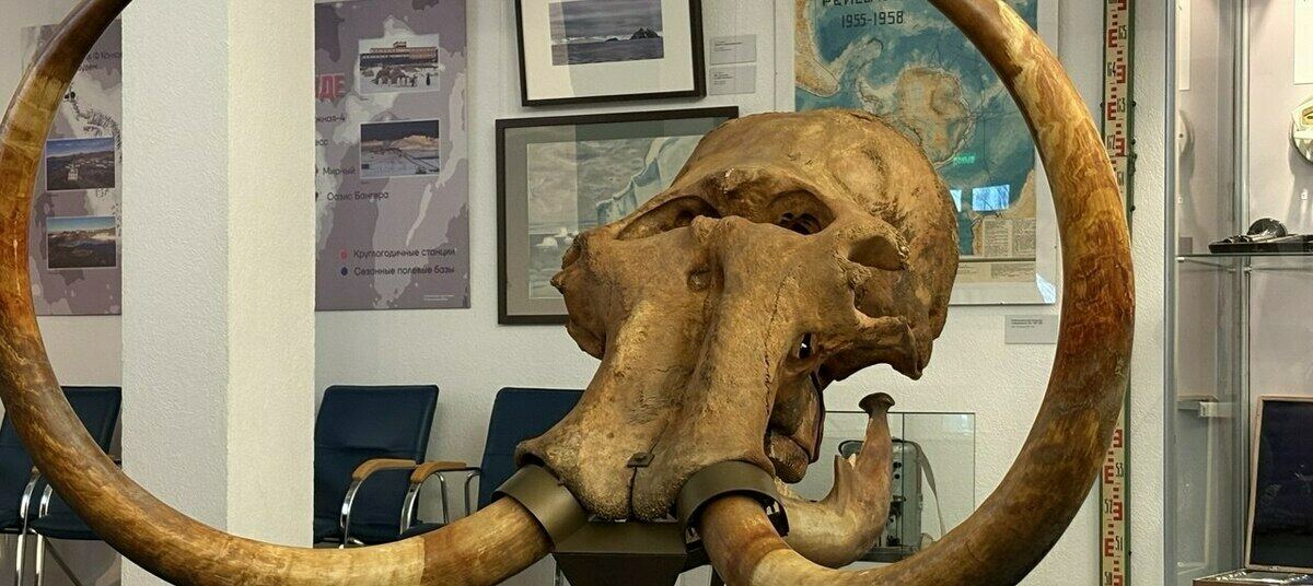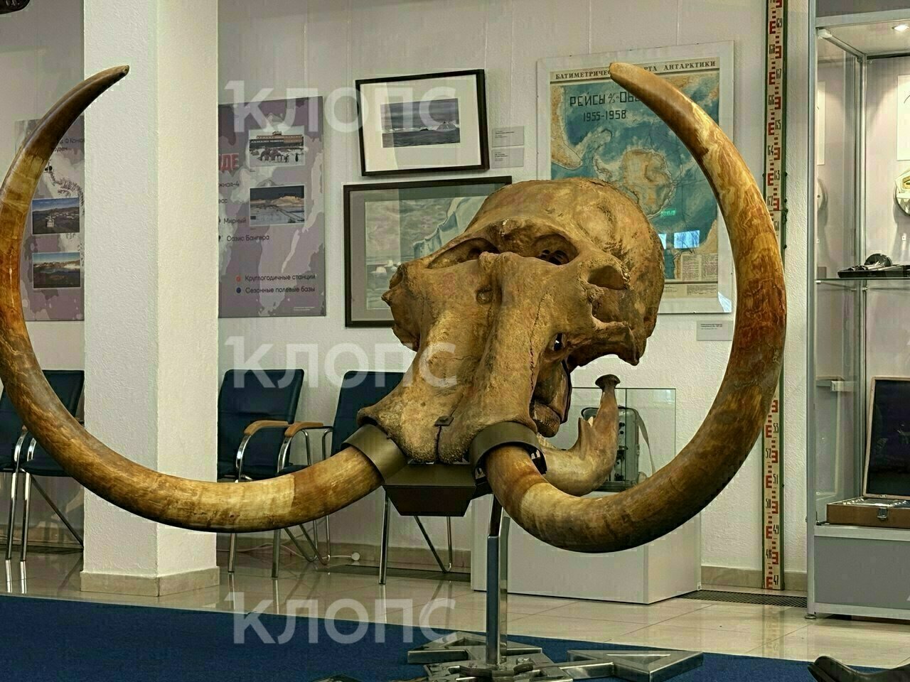 Один из экспонатов — череп мамонта, найденный в Якутии. По словам специалистов, возраст животного на момент гибели — около 40-45 лет. Точно известно, что череп нигде раньше не экспонировался.