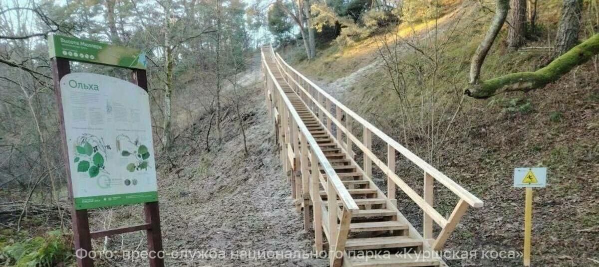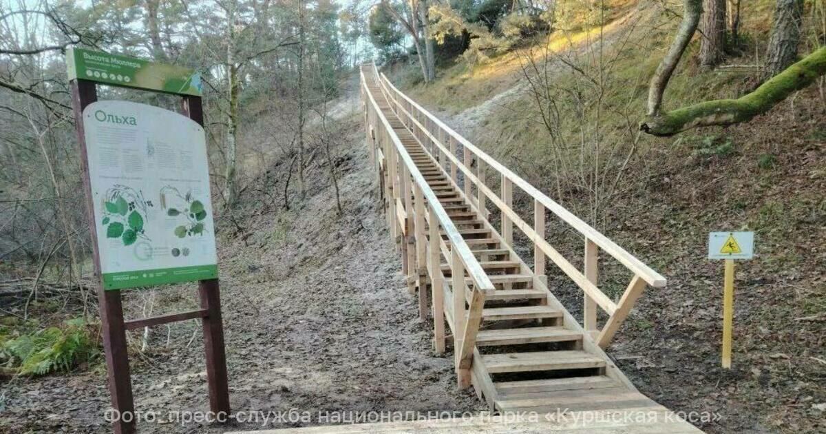 На экологическом маршруте «Высота Мюллера» отремонтировали лестницу, ведущую к смотровой площадке. Об этом сообщили в национальном парке «Куршская коса» в понедельник, 22 декабря.