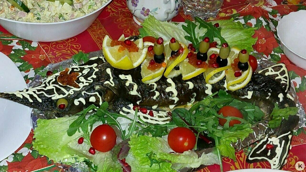 Надежда рассказала, что раньше в Новый год у неё на столе бывал ещё и запечённый осётр или стерлядь по-царски. «Но сейчас в магазинах нет этой рыбы нужного размера, — посетовала она, — нужны небольшие, чтобы помещались на протвень духовки. Поэтому откажусь».