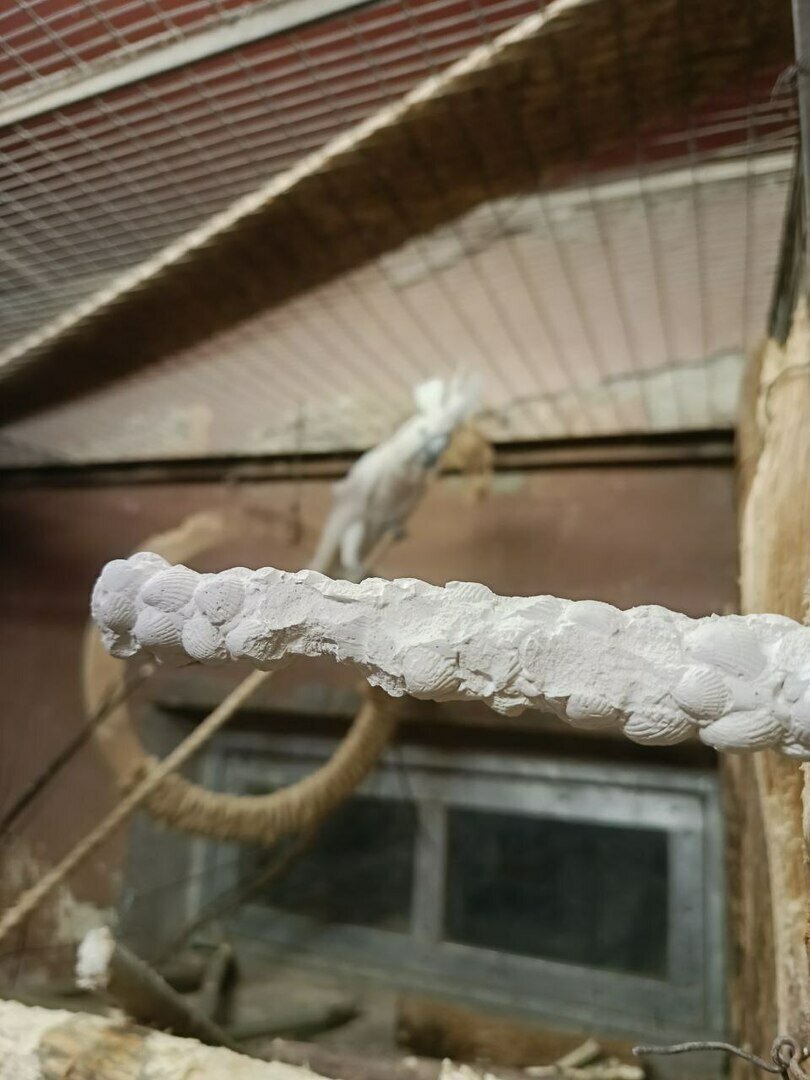 Ящерицам подарок прислали из Брянска. Какаду по имени Сахарок получил на Новый год минеральные палочки, которые тоже поспешил опробовать.