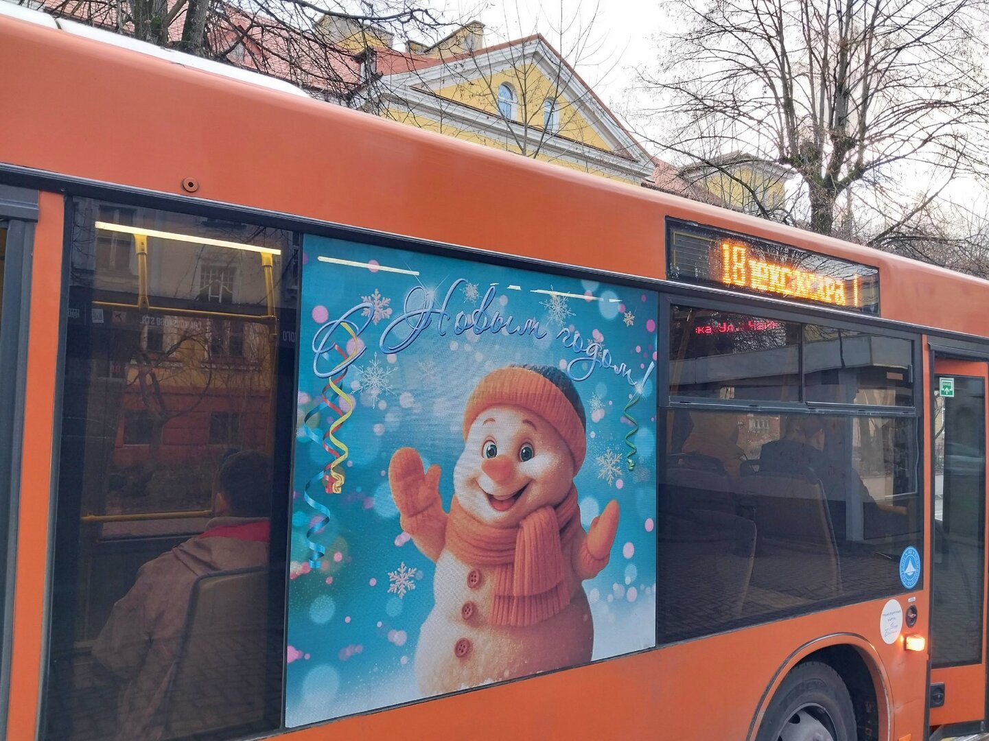 Новогоднее оформление появилось и на другом общественном транспорте. В городе уже можно встретить украшенные троллейбусы и автобусы. Праздничное настроение создают не только гирлянды и мишура, но и тематические костюмы водителей.