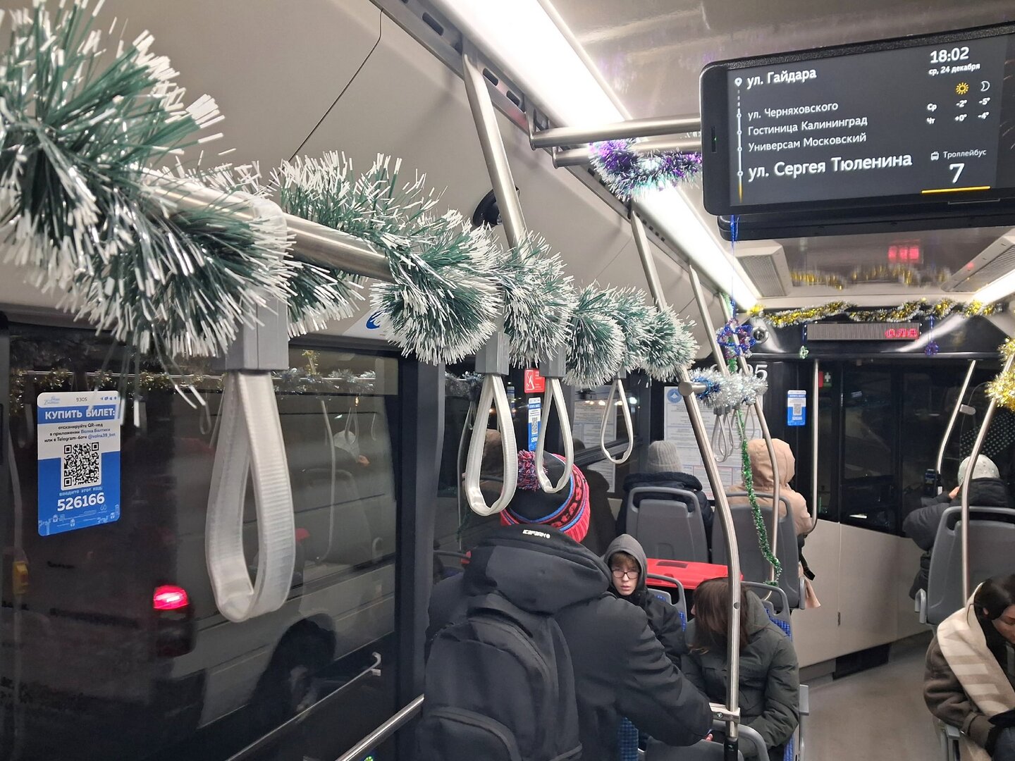 По словам калининградцев, пассажиры реагируют на необычный транспорт с восторгом: снимают видео, фотографируются и поздравляют водителя с наступающими праздниками.