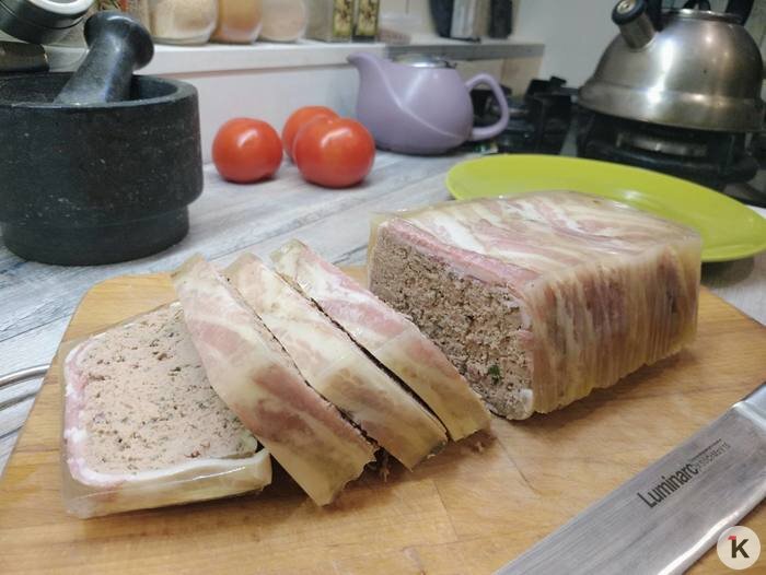 Такой паштет, или, вернее, террин по-французски называется Pâté Grand Mere. Несмотря на немного пафосное название, готовится он просто, экзотических добавок не требует. А главное — позволяет не стоять у плиты 31 декабря. Рецепт проверял «Клопс».
