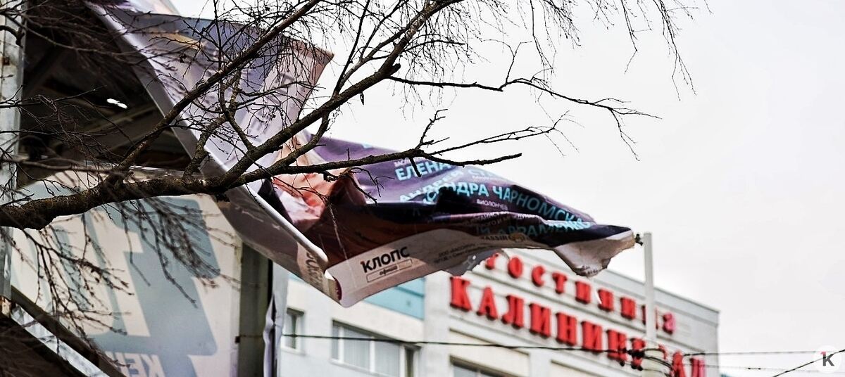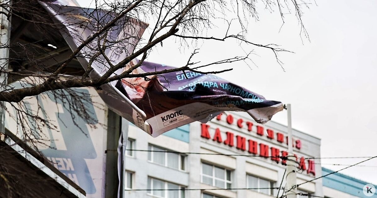 В Калининграде из-за сильного ветра побило новогодние украшения на площади Победы, а также погнуло ёлку.