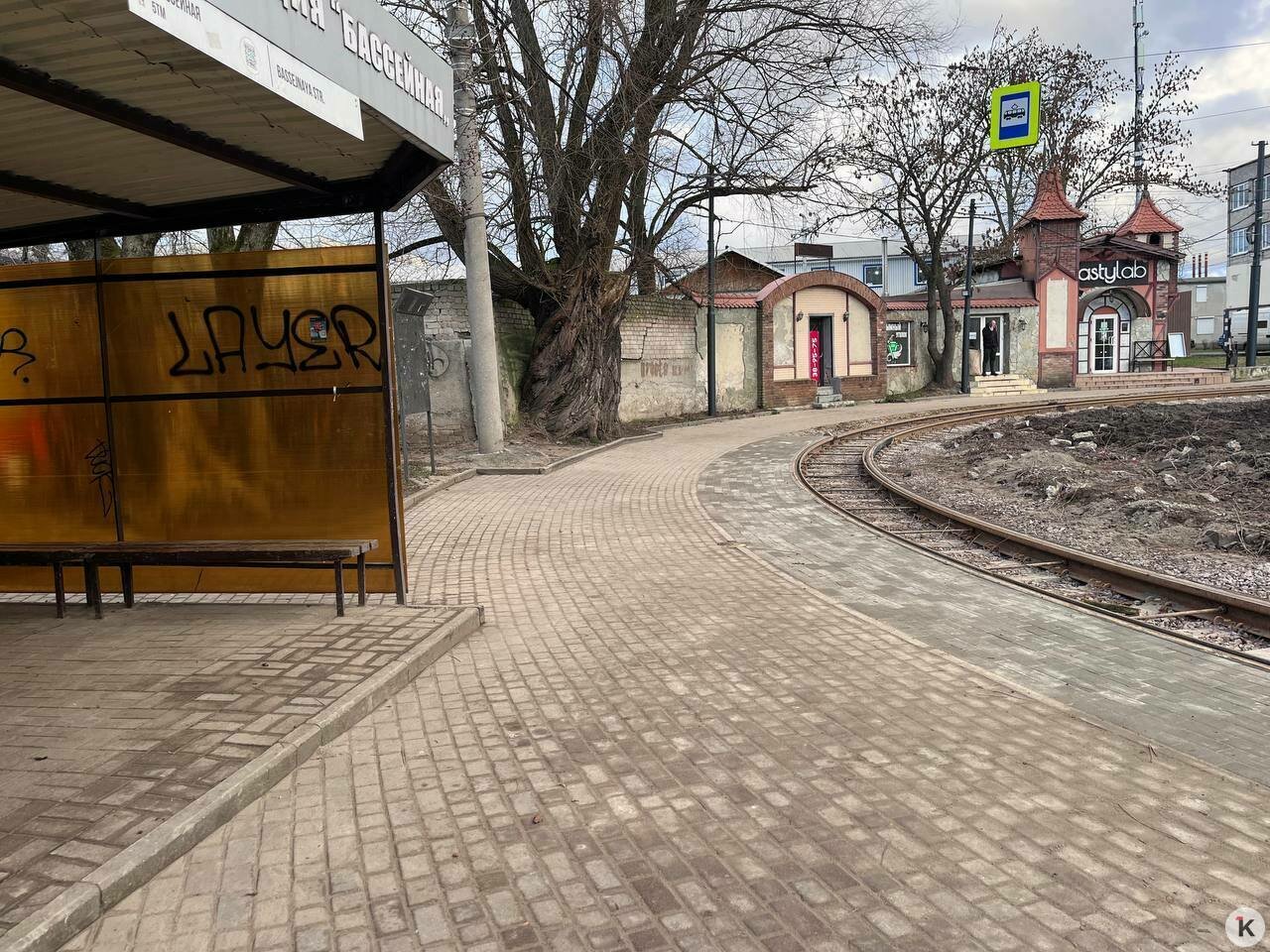 На конечной остановке трамваев выложили плиткой подход к павильону и пешеходному переходу. Сам павильон остался в духе советского прошлого. Местные жители недоумевают: почему нельзя было сразу сделать высокую платформу, как на улице 9 Апреля?