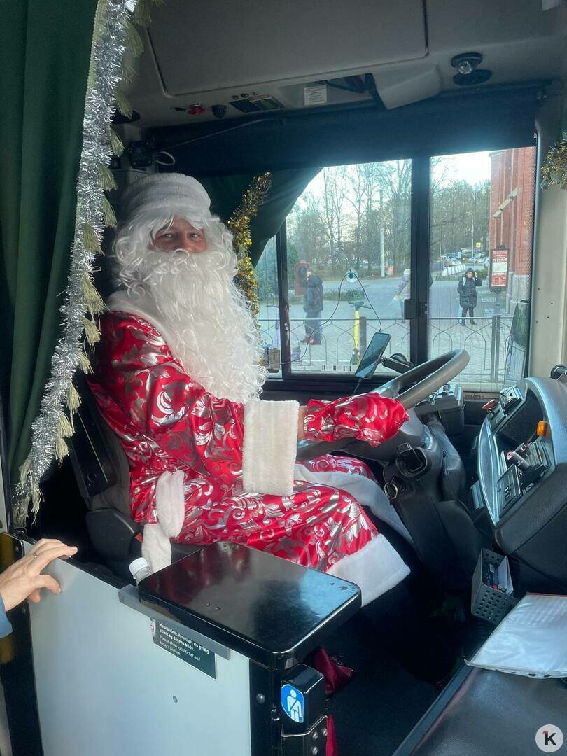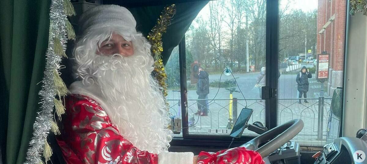 В Калининграде за несколько дней до Нового года в одном из автобусов №103 пассажиров встречает сидящий за рулём Дед Мороз, а обилечивает — Снегурочка. Об этом «Клопс» рассказали очевидцы.
