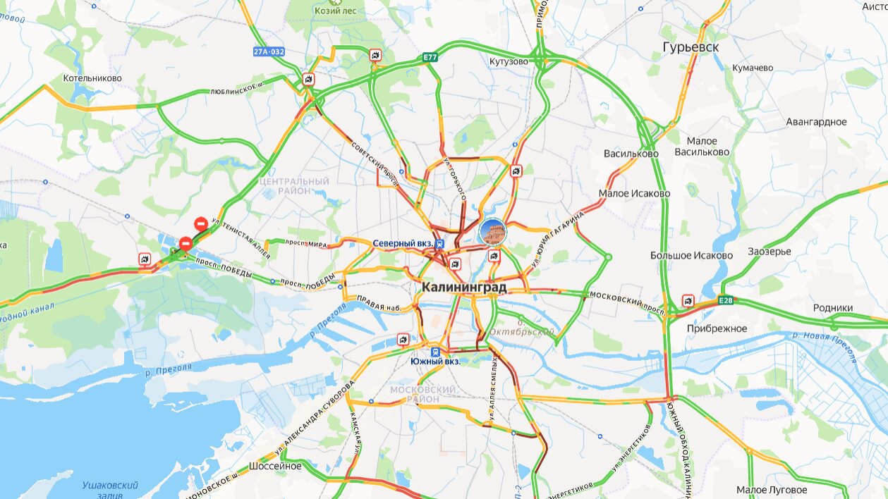 Последний рабочий день 2025 года закончился для калининградцев 10-балльными пробками и множеством аварий. Об этом говорят данные сервиса «Яндекс.Карты» во вторник, 30 декабря.